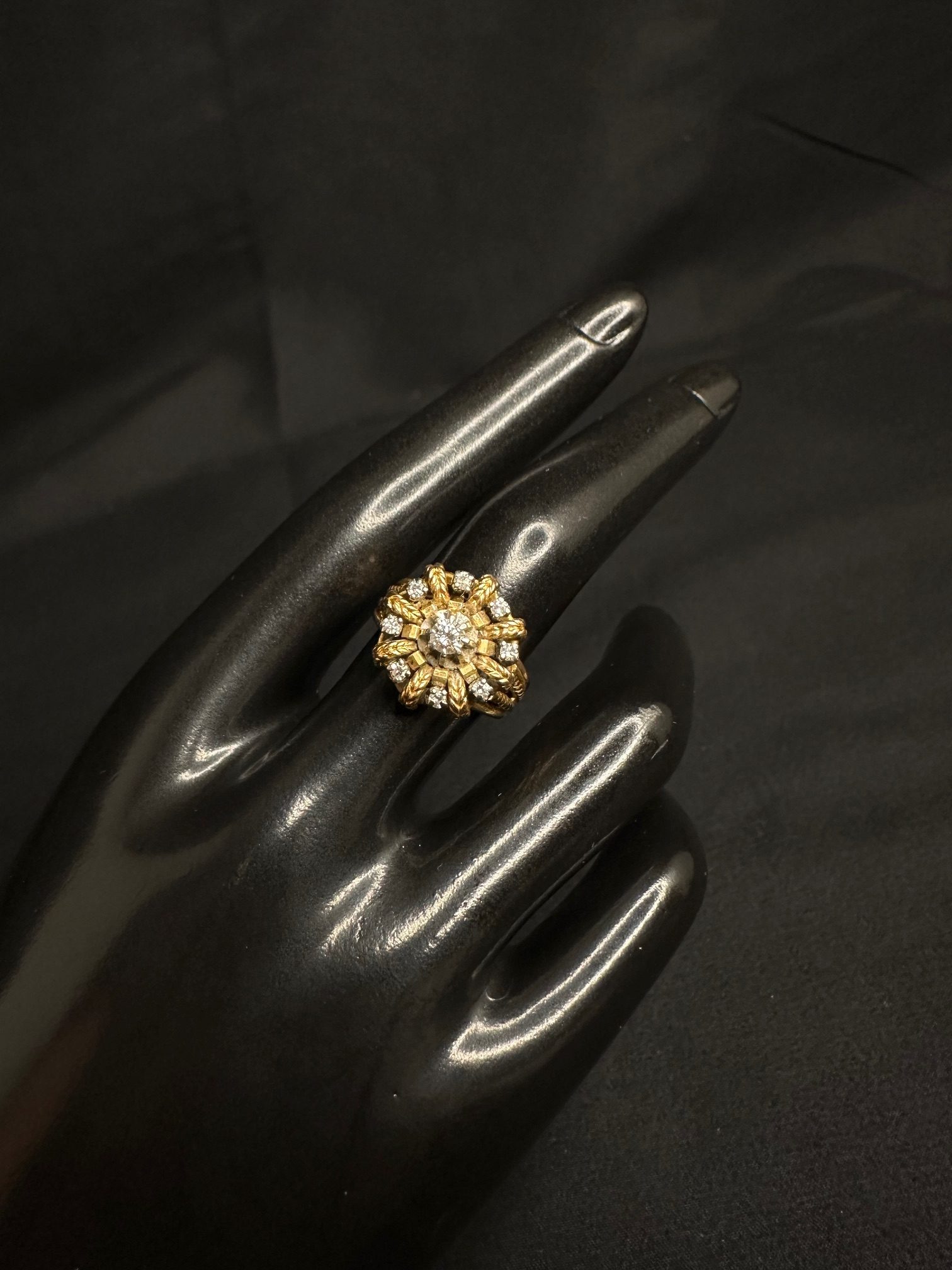 Bague fleur diamants or 18 carat 750/1000 taille 53 poids: 6.28Gr