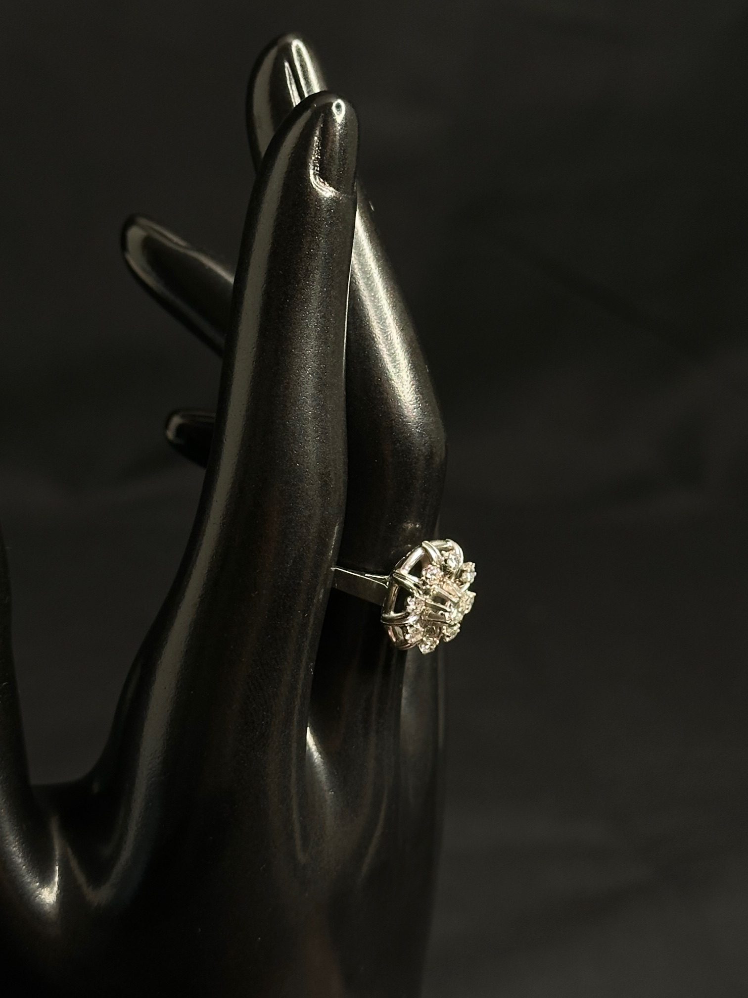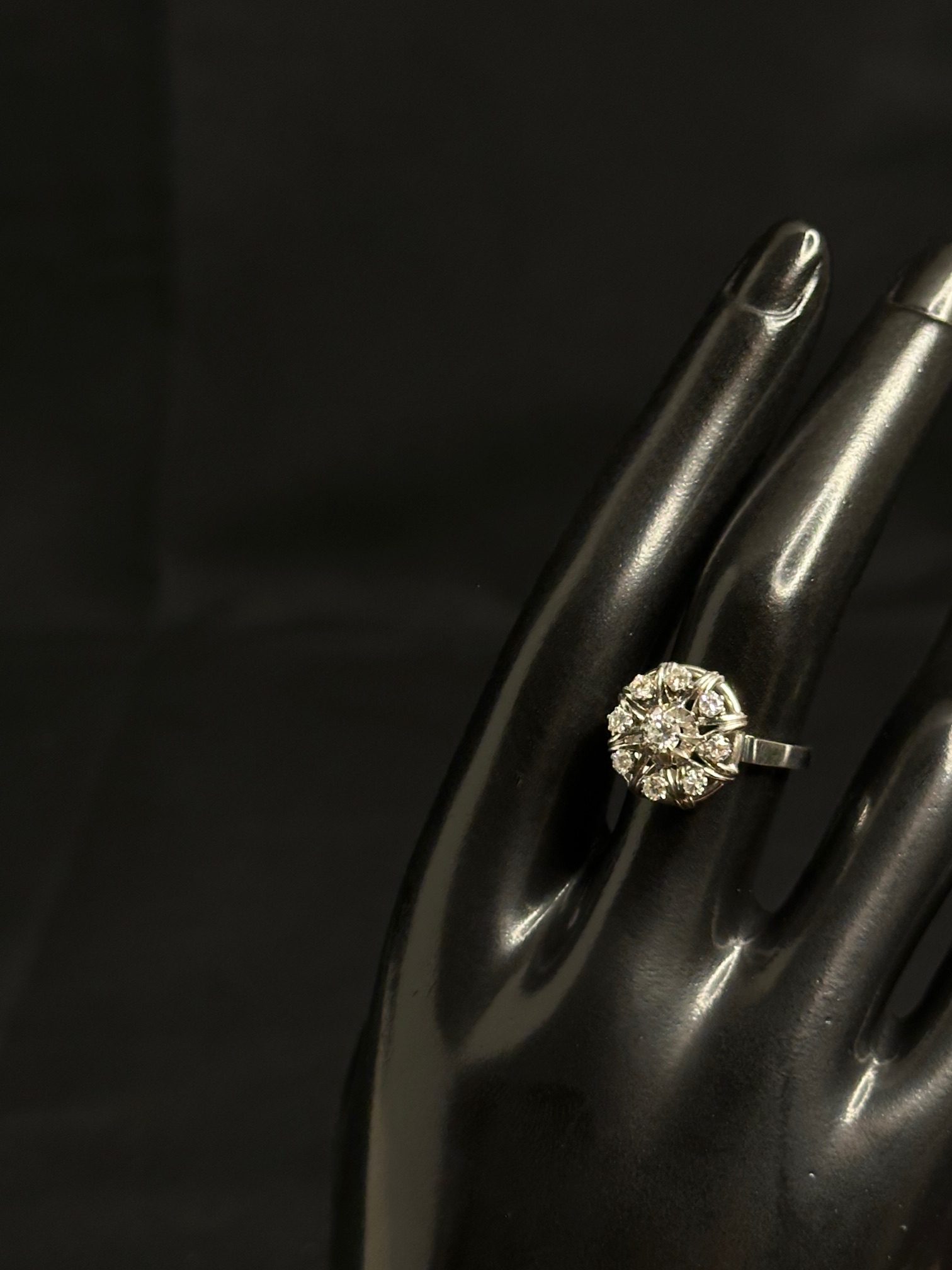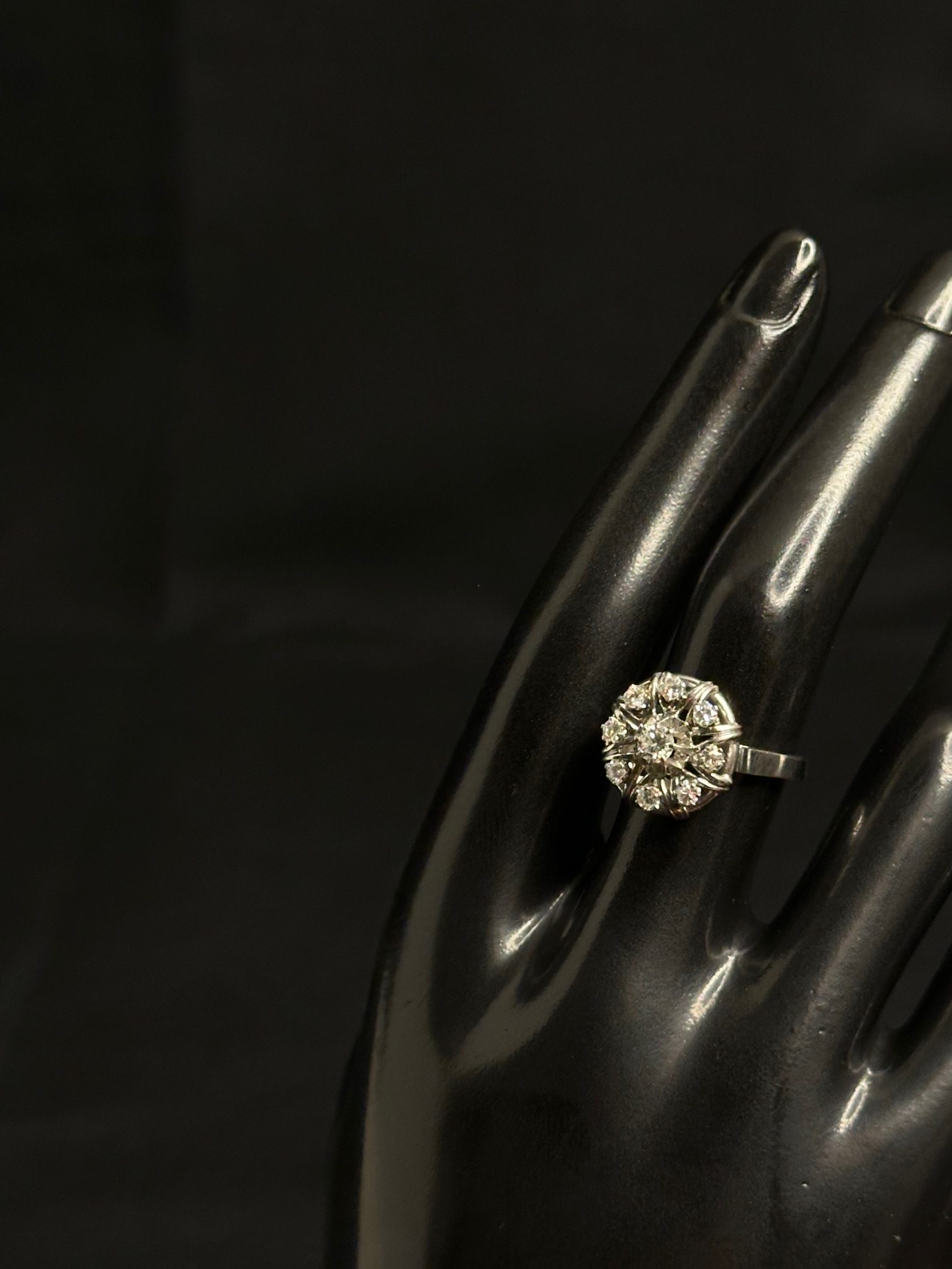 Bague fleur diamants et or blanc 18 carat 750/1000 poids: 5.21Gr