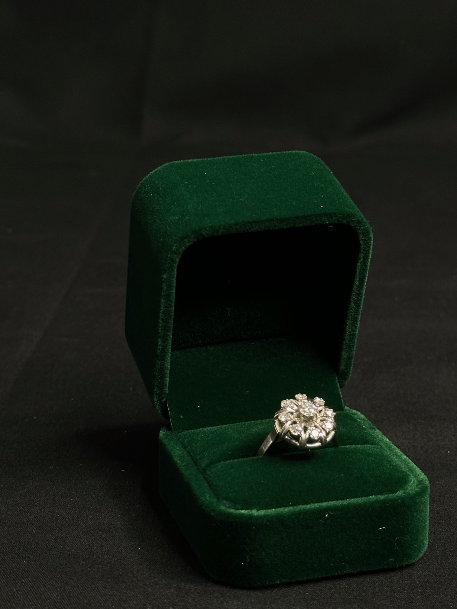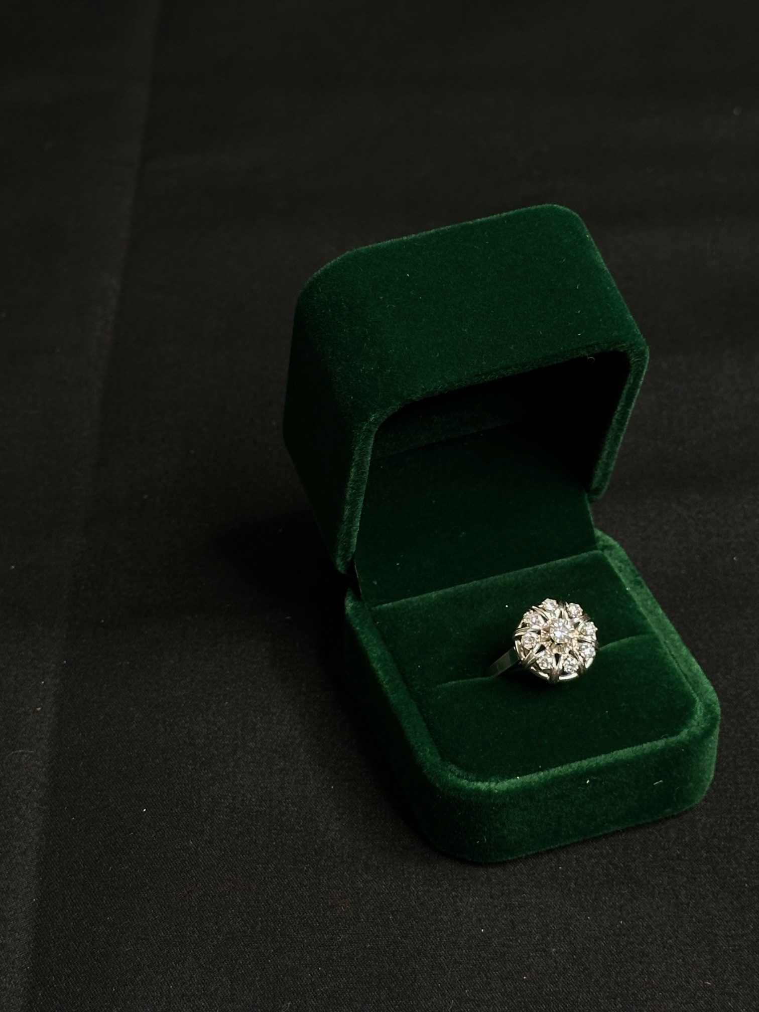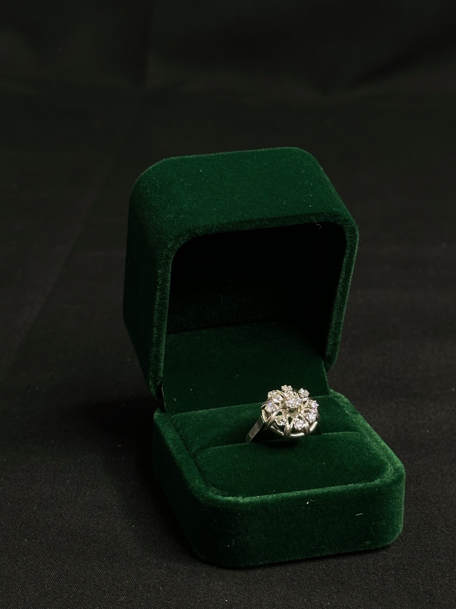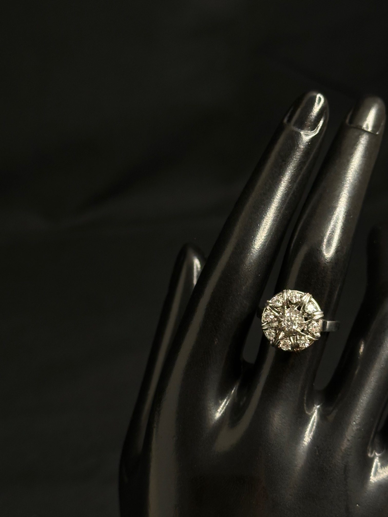 Bague fleur diamants et or blanc 18 carat 750/1000 poids: 5.21Gr