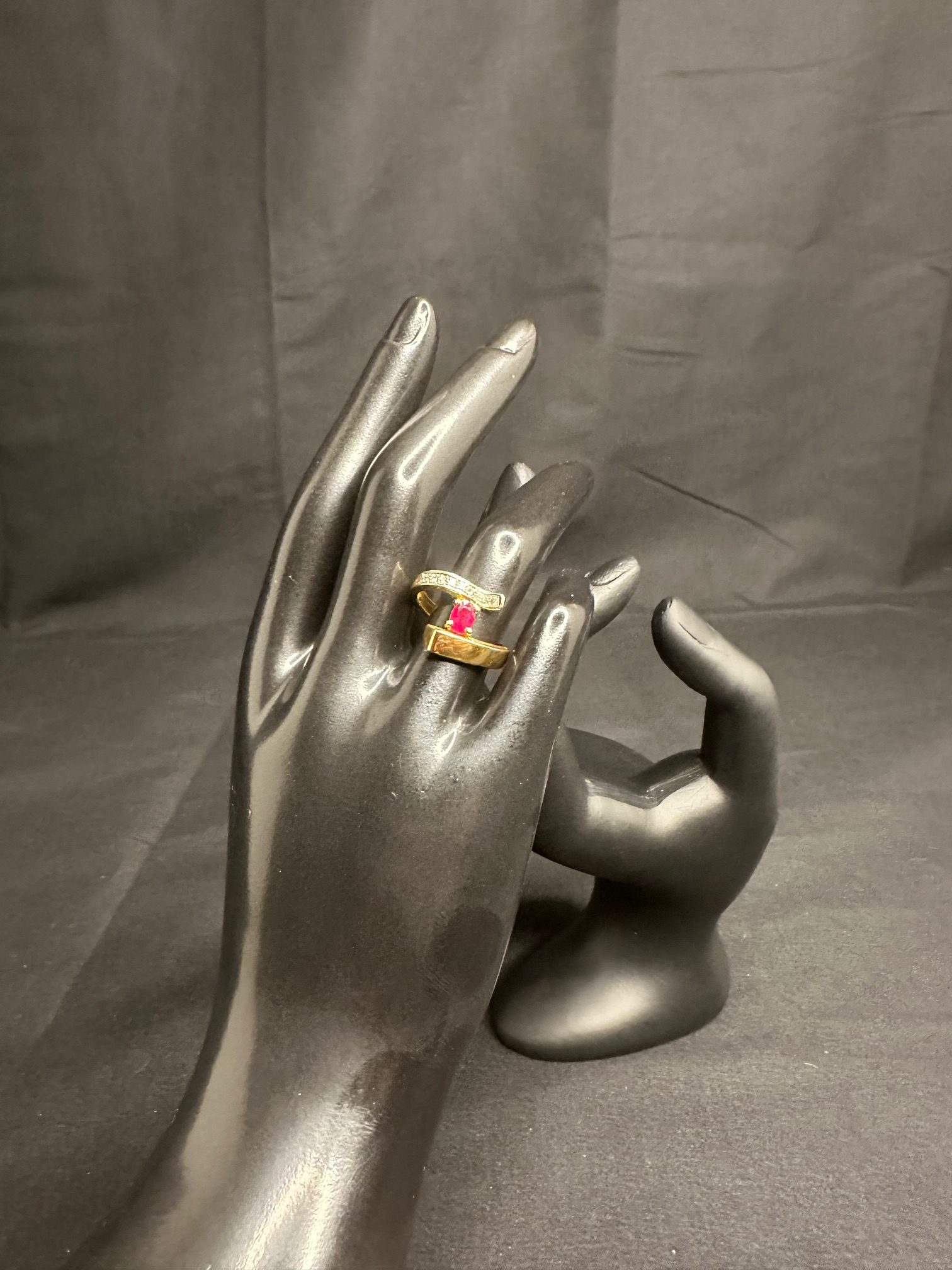 Bague rubis et diamants or 18 carat 750/1000 taille: 54 poids: 4.65Gr