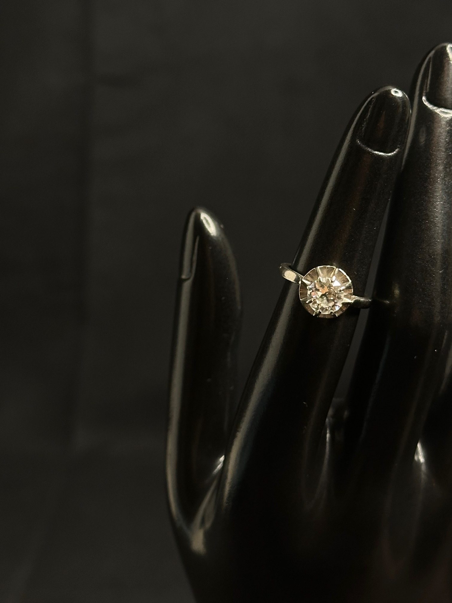 Bague solitaire or blanc 18 carat 750/1000 poids: 3.39Gr taille 49