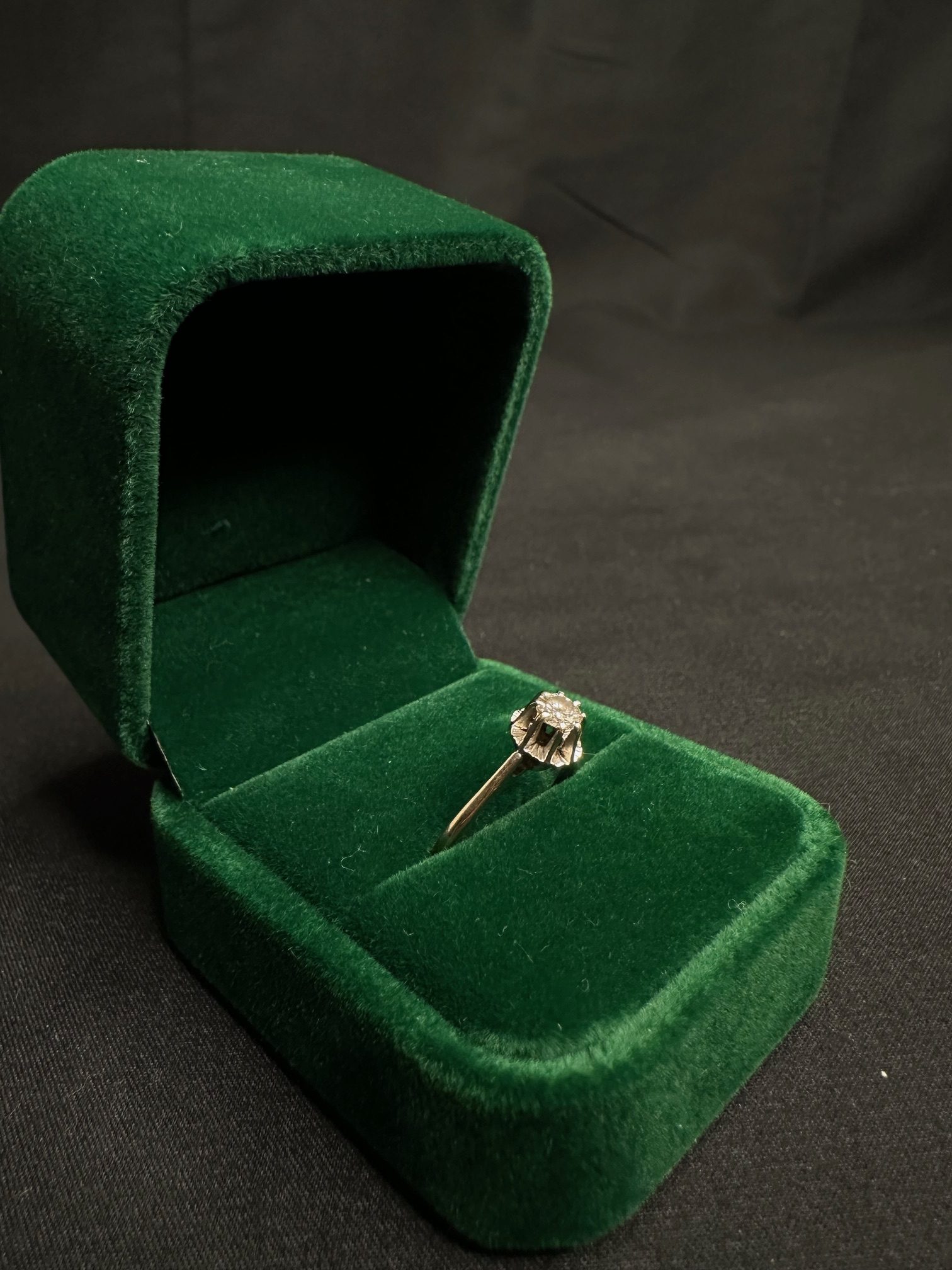 Bague solitaire 0.30ct or blanc 18 carat 750/1000 taille 53 poids: 2.22Gr