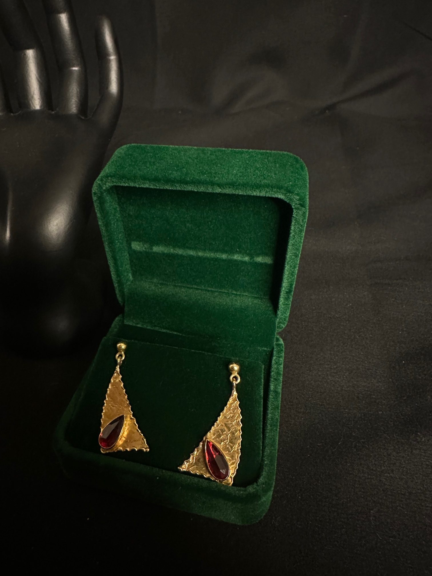 Boucles d’oreilles grenats or 18 carat 750/1000 poids: 5.48Gr