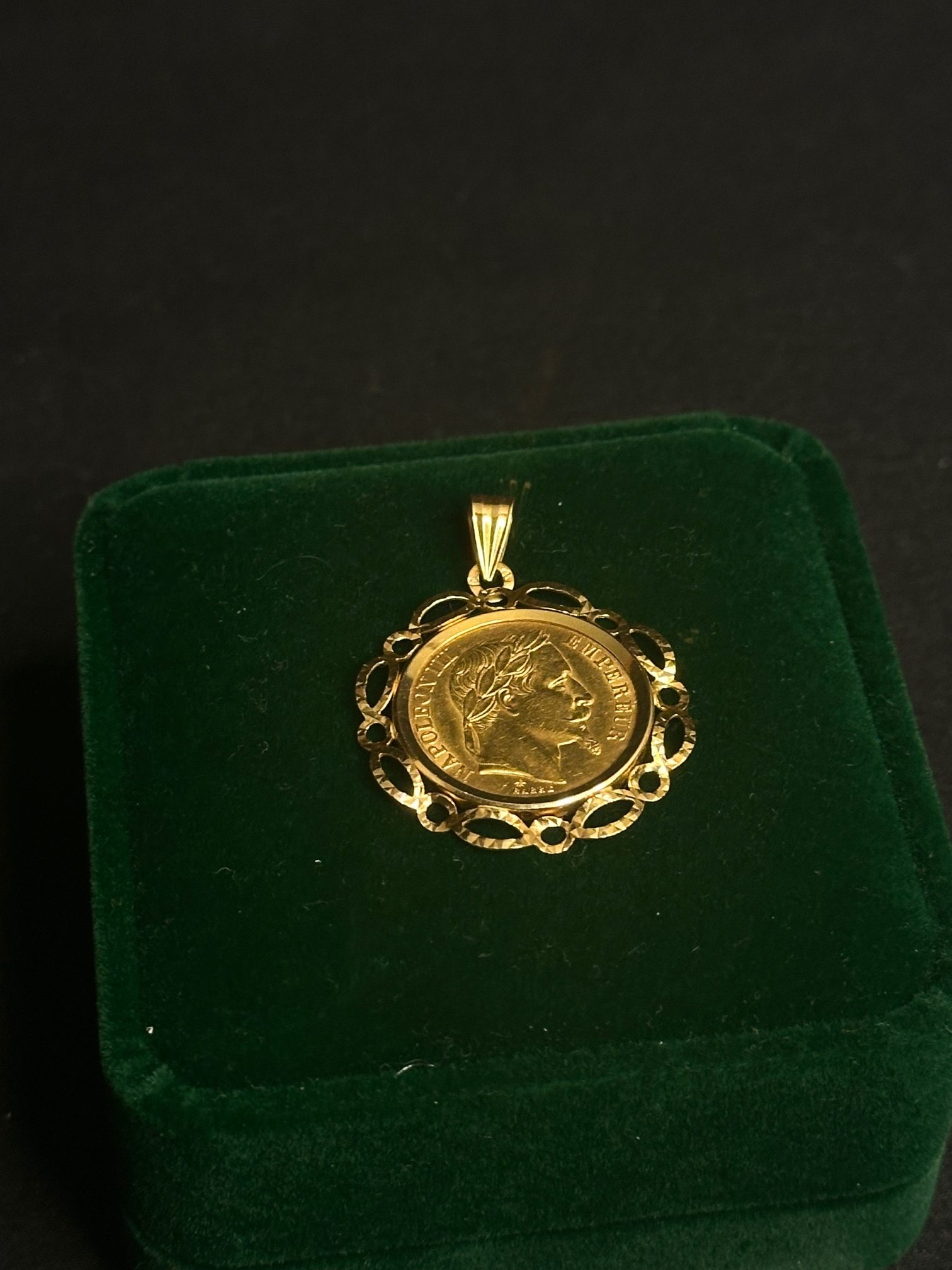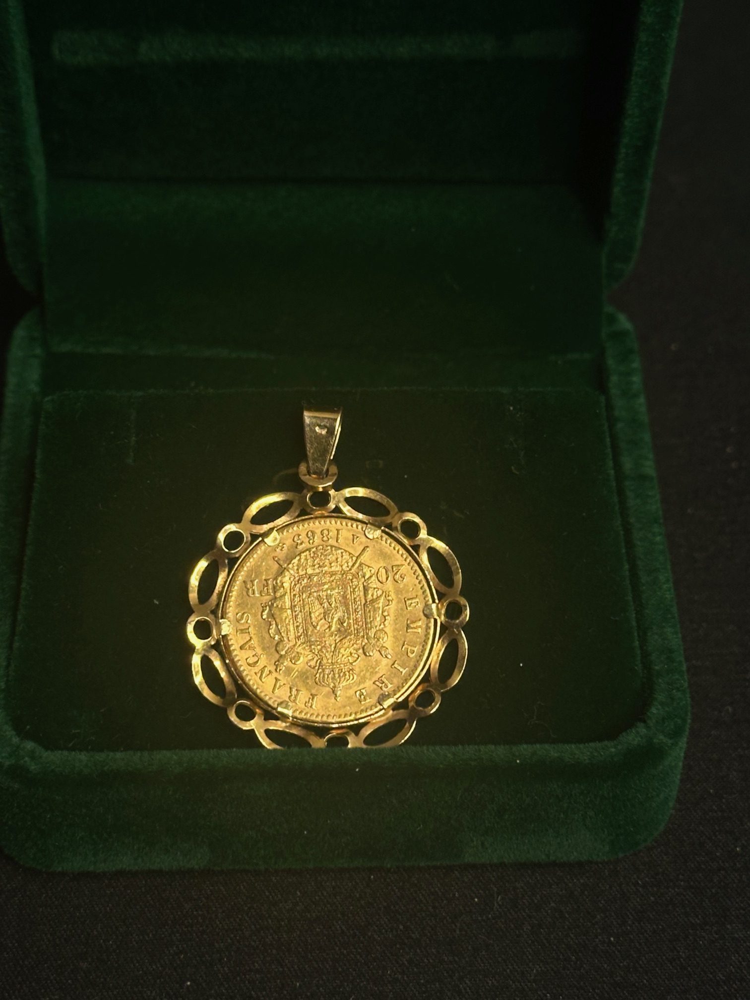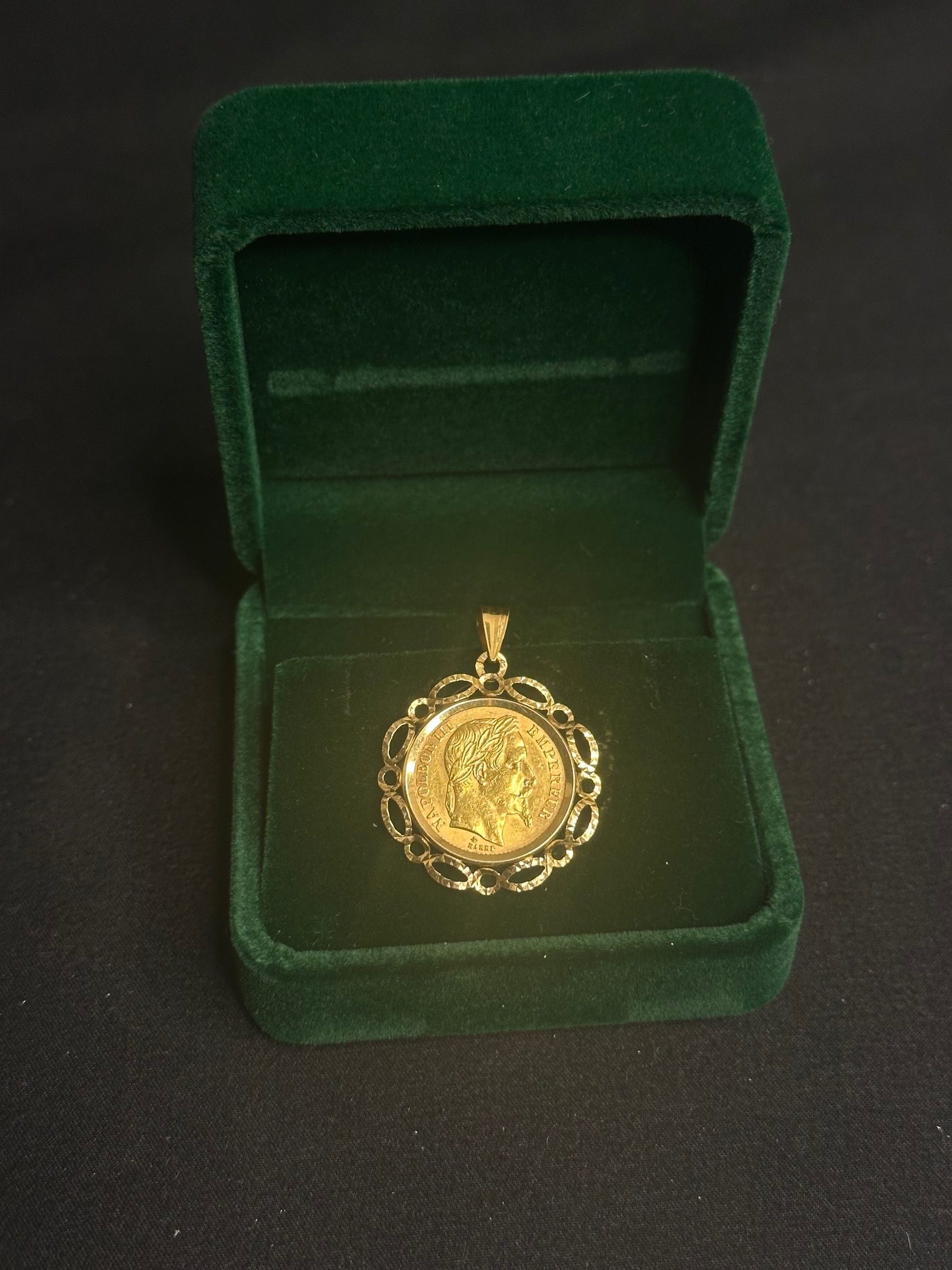 Pendentif pièces de 20fr en 18 carat 750/1000 la pièce est en 22 carat poids de la pièce 6.45Gr poids total du pendentif 8.4Gr